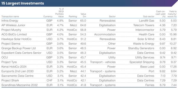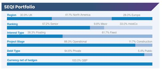 - SEQI is the U.K.’s largest listed debt investor, investing in economic infrastructure private loans and bonds across a range of industries in stable, low-risk jurisdictions, creating equity-like returns with the protections of debt.